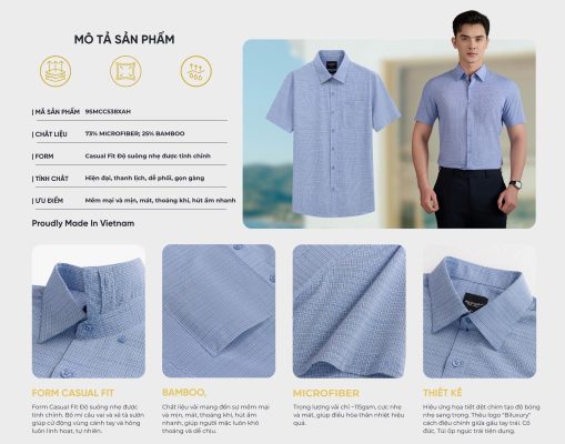 Thiết kế: Hiệu ứng họa tiết dệt chìm tạo độ bóng nhẹ sang trọng. Thêu logo “Biluxury” cách điệu chính giữa gấu tay trái. Cổ đức, Túi ốp ngực trái tiện dụng.